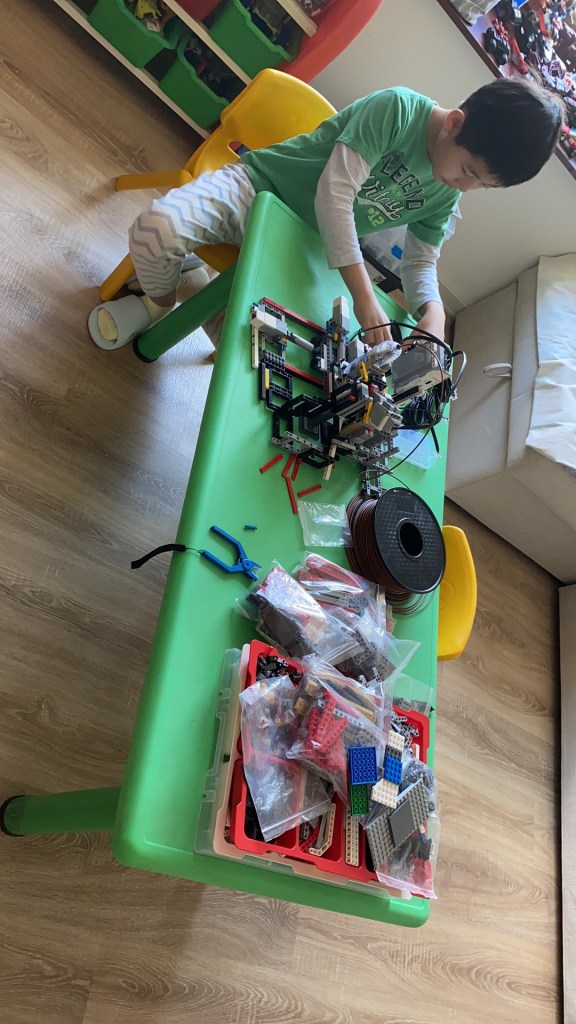 It is building in 2019. I find many of students want to draw blackboard, but someone need join the Interest class. So I building the black board printer, you input what do you want to draw, the LEGO EV3 will be run and print it in black board.